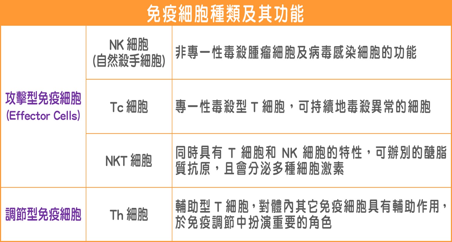 美律細胞將人體免疫細胞根據其功能歸類為毒殺型調控型兩大類, 具有毒殺及清除病毒以及抑制腫瘤發生之功能。調控型抑制免疫細胞過度反應,避免自體免疫疾病的發生。